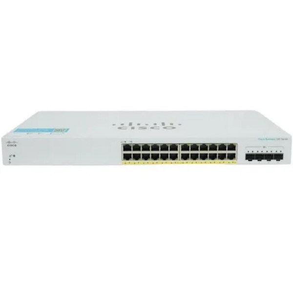 The Cisco CBS220-24T-4G is a 24-port Gigabit Ethernet switch designed for small and medium businesses (SMBs) needing reliable, secure, and easy-to-manage networking. With 4 SFP fiber uplink ports, advanced VLAN and QoS support, and a silent fanless design, it delivers enterprise-grade features at an affordable price.
